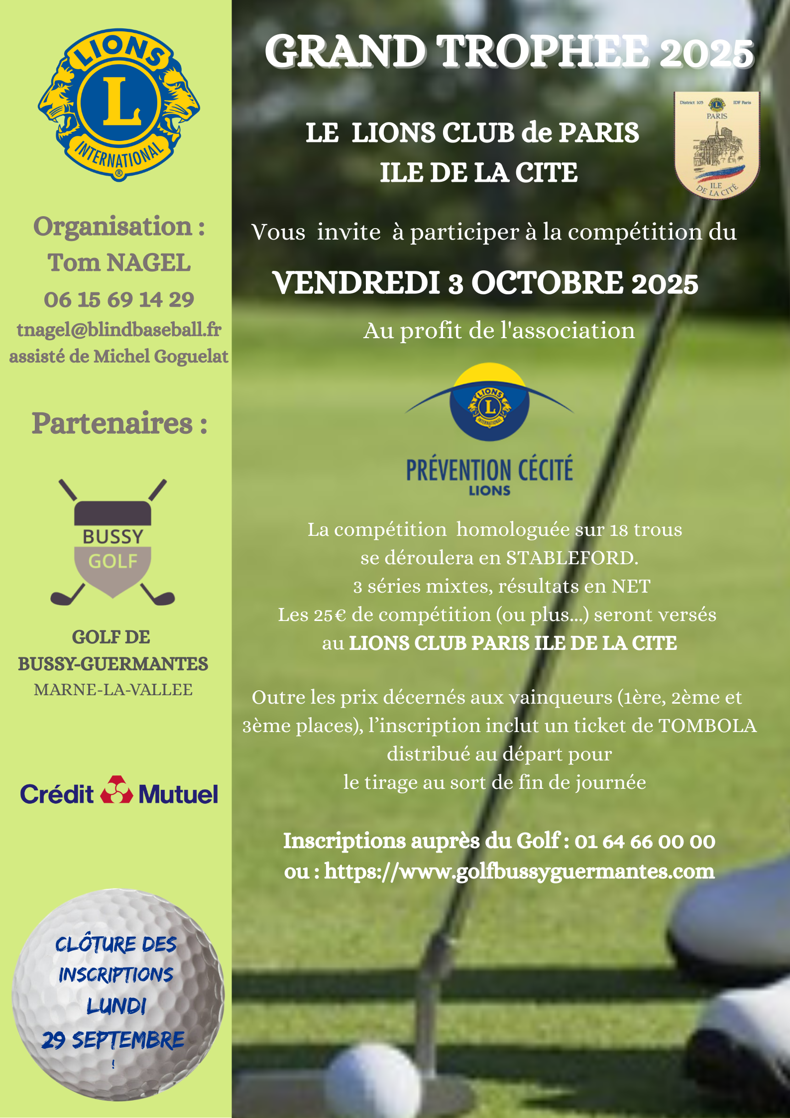 VENDREDI 3 OCTOBRE 2025, GRAND TROPHEE DE GOLF AU BENEFICE DE PCL