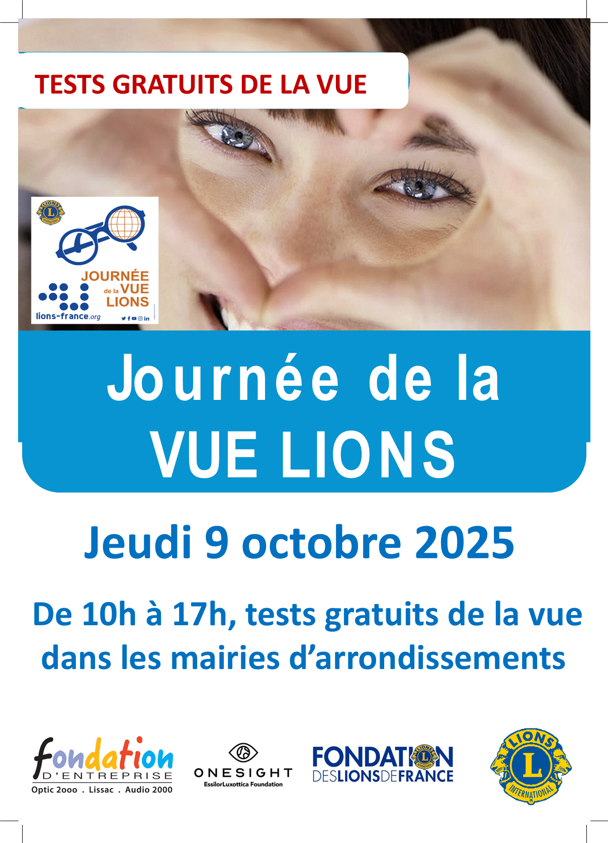 Comme chaque année, à l'occasion de la Journée Mondiale de la vue, des bénévoles du Lions International proposeront dans la plupart des mairies d'arrondissement parisiennes. des tests gratuits de la vue de 10h à 17h